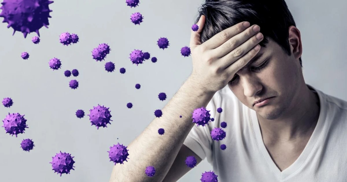 Imagine sugestivă cu un bărbat care se ține de cap sugerând gripa