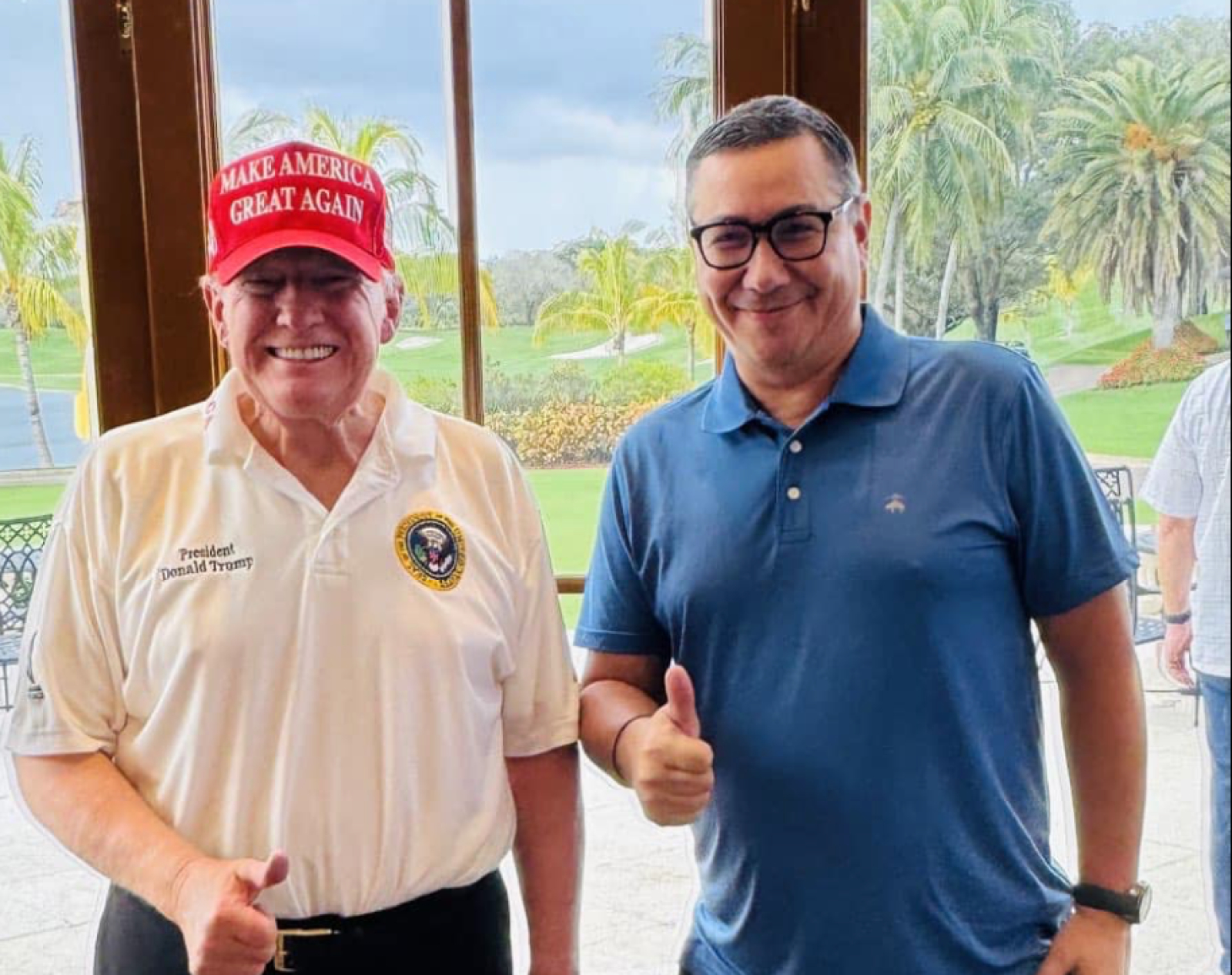 În 28 aprilie, Donald Trump Jr. vine în România. Candidatul independent la alegerile prezidențiale Victor Ponta a spus, în interviul acordat Jurnalu, în cadrul emisiunii ”DCVotez”, că ”Eu sper să aducă un mesaj foarte clar, acela că, și pentru America, România e importantă, iar, în acest fel, să mă ajute, după alegerile prezidențiale, ca-n prima vizita pe care o voi face în America, sper eu la Mar-a-Lago, (…) să mă ajute să-l conving pe președintele Donald Trump să spună ceea ce a spus despre Polonia: ”SUA garantăm securitatea militară a Poloniei”. Nu a zis de România asta și nu-mi place. Mă îngrijorează. (…) Nu este o întâmplare că președintele Donald Trump nu a spus acest lucru, nu este o întâmplare că ne-a pus pe hold, nedreaptă decizia, dar a fost una politică”.